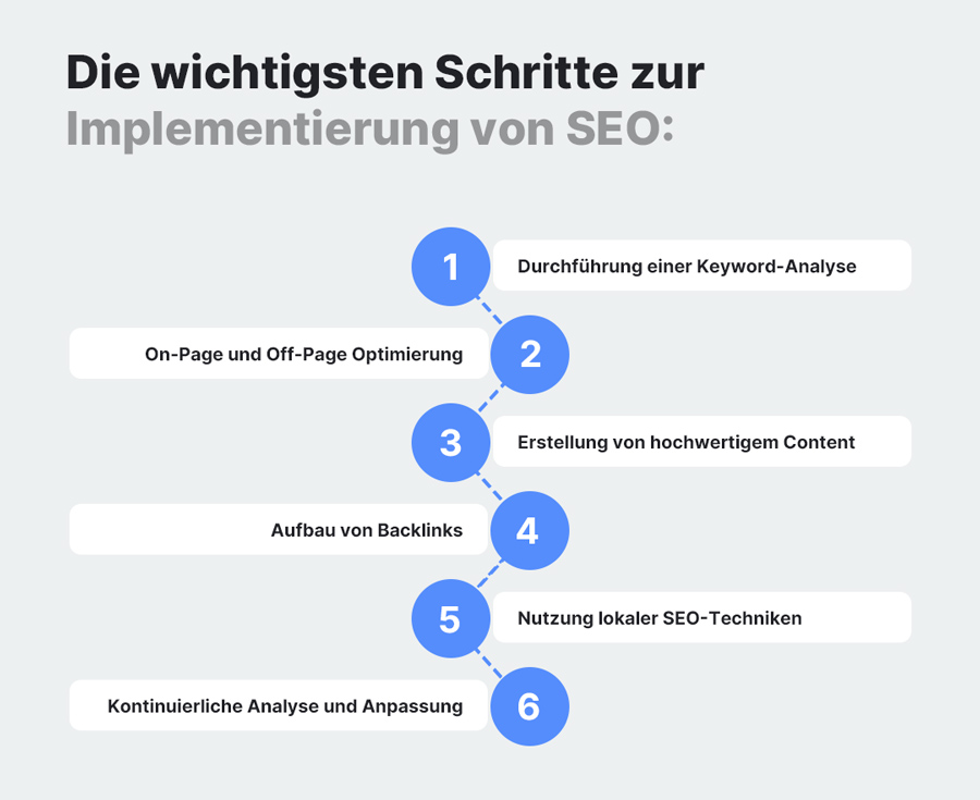 On-Page und Off-Page SEO Maßnahmen, wie die Erstellung von hochwertigem Content und der Aufbau von Backlinks, sind ebenfalls essenziell. Praktische SEO-Maßnahmen umfassen die Nutzung von lokalen SEO-Techniken für stationäre Geschäfte und die kontinuierliche Analyse und Optimierung der SEO-Strategien anhand von Analysedaten.